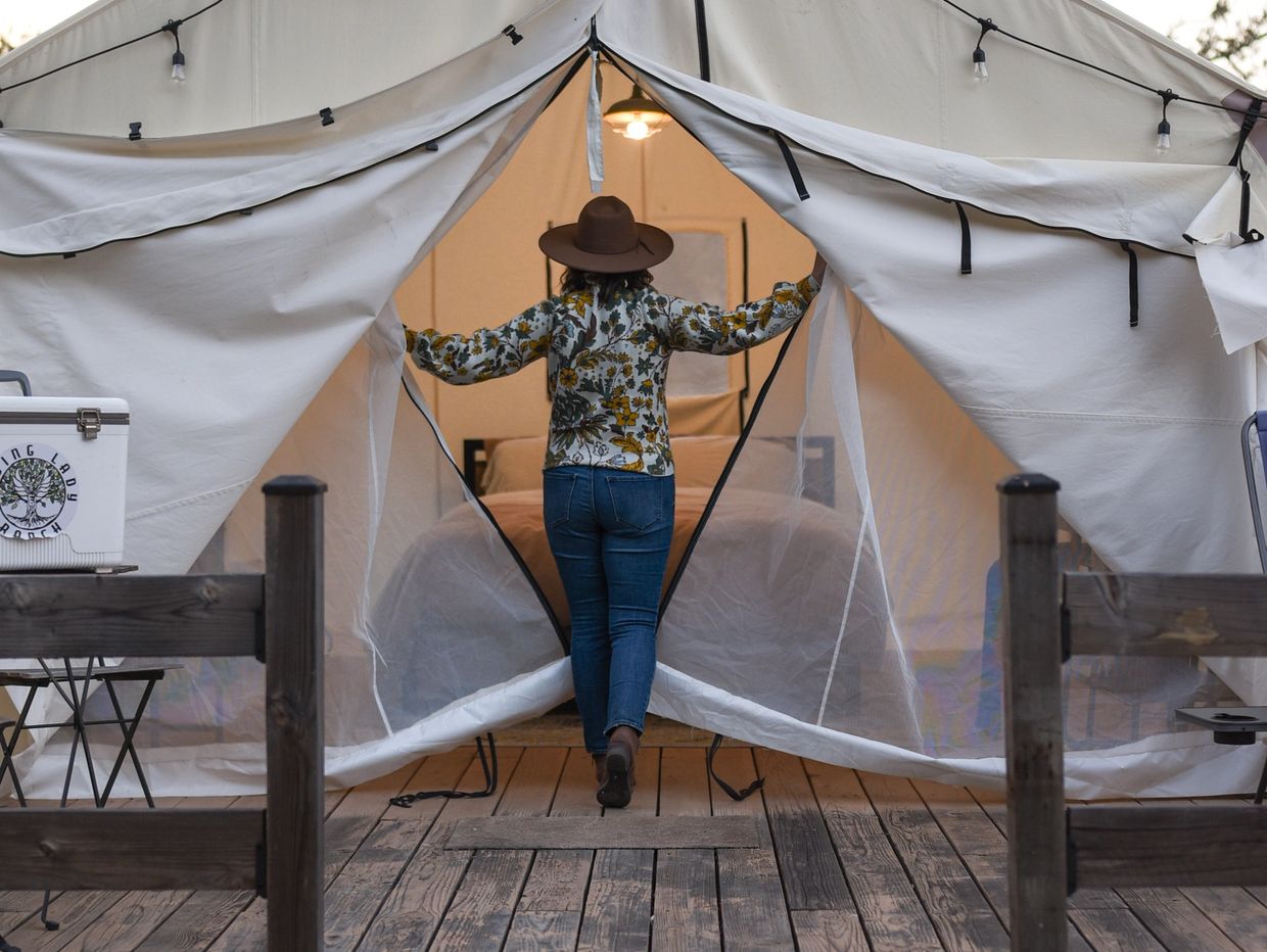Our glamping tents offer a cozy, upscale camping experience complete with plush bedding, thoughtful amenities, and the soothing sounds of nature all around. It's rustic elegance at its best—perfect for couples looking to unplug and unwind under the stars.